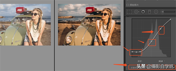 4、曲线:一般Lr选择的都是点曲线,可以直接在线上看打点,进行拖拽就可以了。