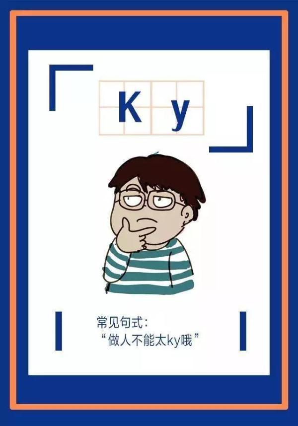KY是撷取自日语的“空気が読めない(发音kuuki ga yomenai)”的第一个字母,指不会看场合颜色,说出来的话破坏气氛影响别人心情。