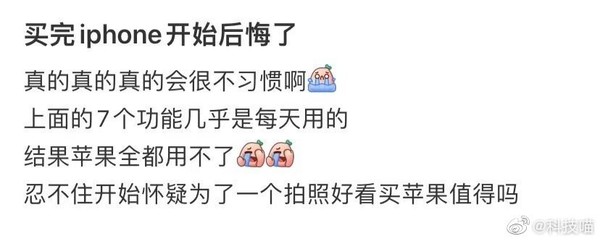 网友后悔买iPhone的理由