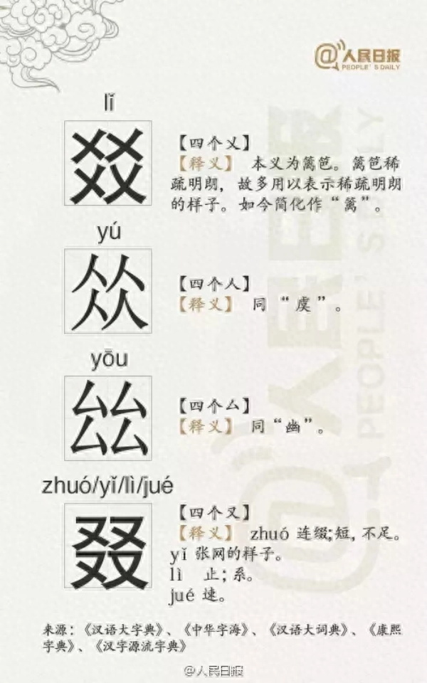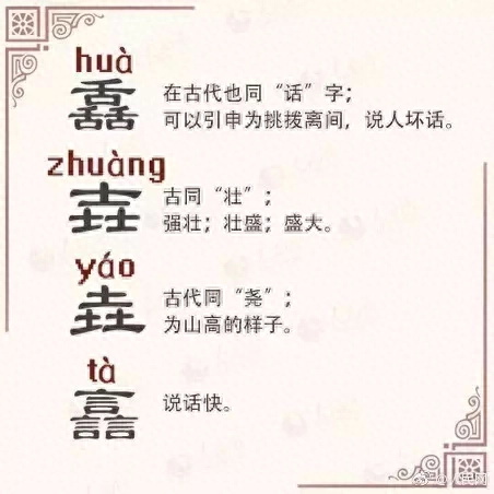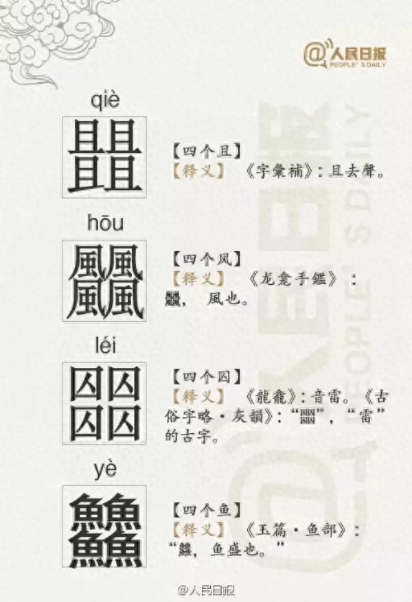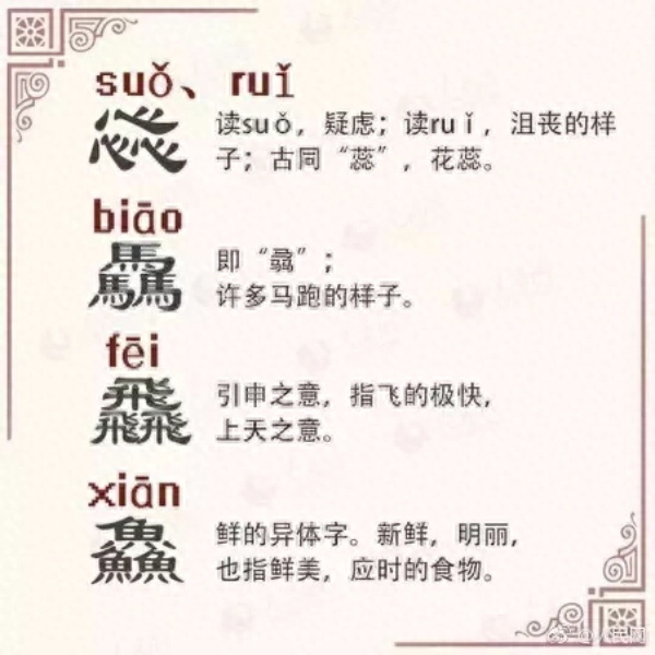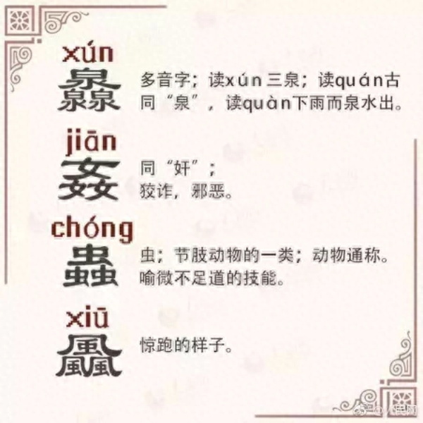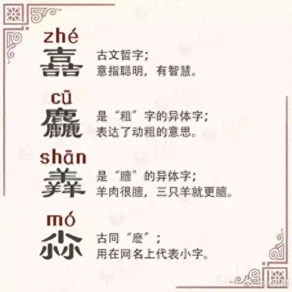汉字世界,不是三人成虎,而是三人成“众”;三个鱼,不是指鱼贯而入,而是指滋味之鲜,鱻(xiān),鲜的异体字。