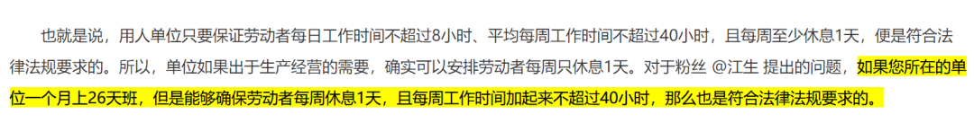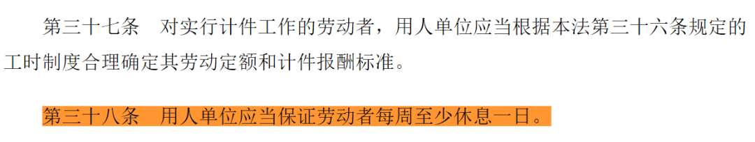 这也是为什么,双休一直难以实现的根源,因为它根本不违法,法律的底线是一周休一天
