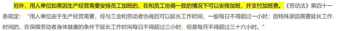 重点是后面一句,在和员工协商一致的情况下,可以加班并且支付加班费