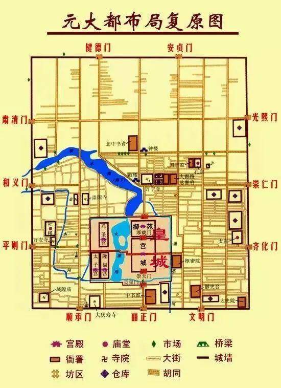 中同元年(1260年),忽必烈抱着消灭南宋统一中国的勃勃雄心,从蒙古高原来到燕京城,可是此时城中的宫殿已成为一片废墟,于是忽必烈决定在旧金中都城的东北郊外选择新址,营建一座新都城,又以“元”为国号,并把新都城命名为大都,至元十一年(1274年)大都城建成,这就是我们常说的元大都。