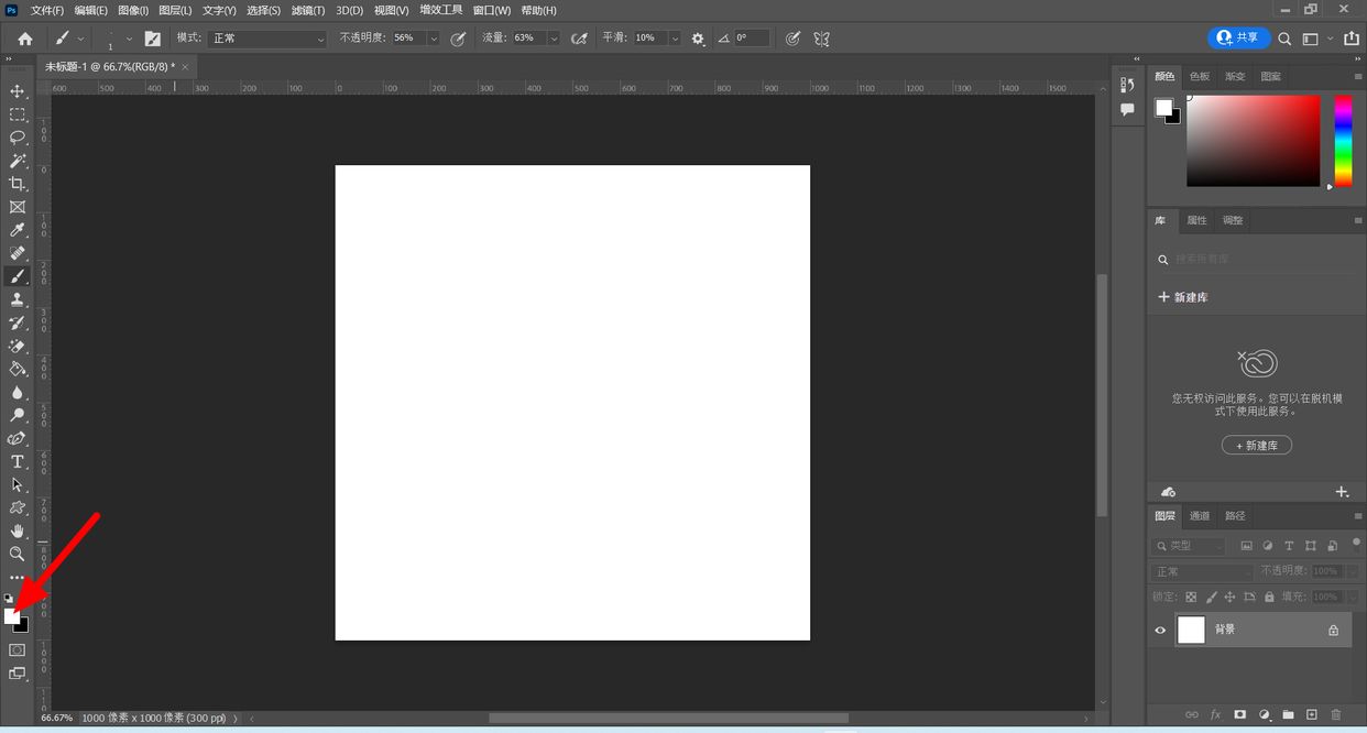 这种情况是由于画笔的颜色和背景颜色一致,这样使用画笔是画出来也无法看到,将前景色颜色切换为与背景较大反差的颜色,就可以解决。