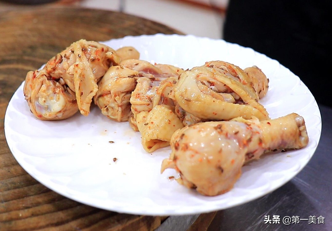 盆中加入食盐2克,蚝油5克,胡椒粉2克,生抽5克,倒入一些料酒,白糖少许提鲜,再撒入一小撮孜然粒,一小撮辣椒面,把所有的调料涂抹在鸡腿上面,腌制半个小时以上,