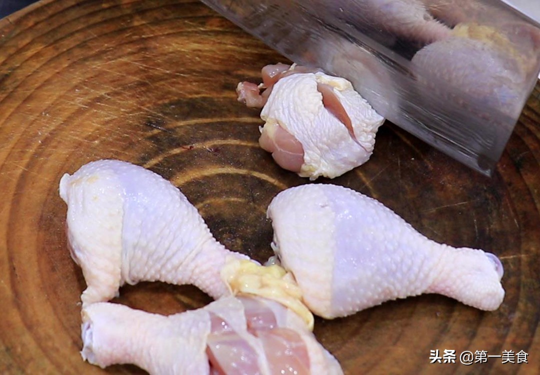 准备鸡腿几个,已经提前浸泡洗干净了,现在在每个鸡腿上面各划上几刀,这样更容易煮熟入味。