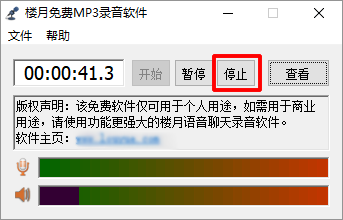 4, 音乐播放结束时,立即点击”停止”按钮,停止录音。