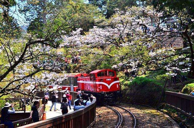 而每年的3月中旬至4月中旬是阿里山的花季,山樱、吉野樱与重瓣樱等将整座山装点成美丽缤纷的花海,是台湾赏樱的最佳地点。