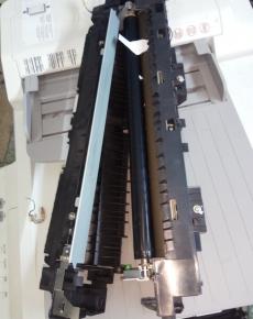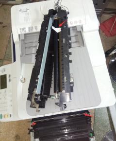 将定影从复印机侧边取出,固定螺丝拆掉即可轻松取出定影组件,打开定影发现里面有异物,纸屑在定影内