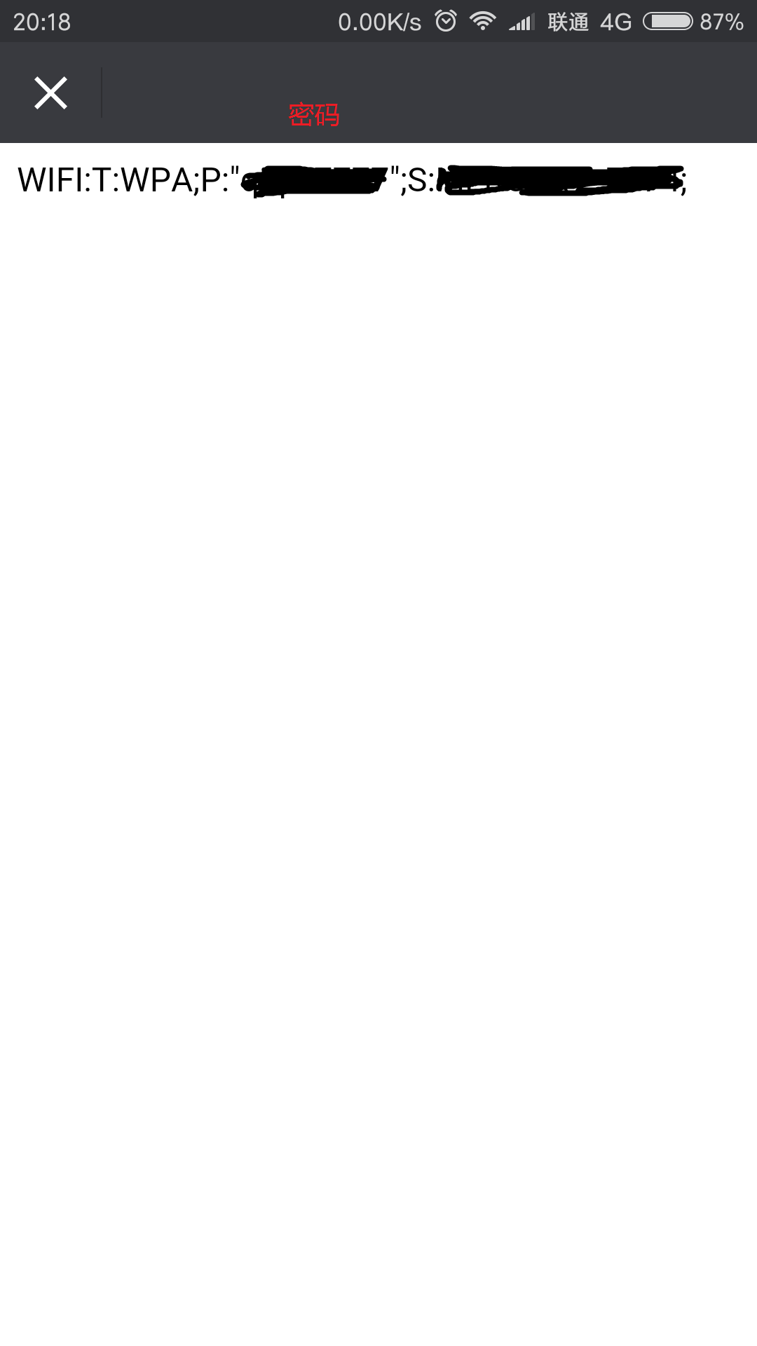 wifi万能钥匙很简单就连上了网,在这里我就不加赘述了,当我们已经连上网络了,这时候可以用小米手机自带的分享密码功能来查看手机的密码。找到小米手机的wifi,然后点击分享密码,然后就会弹出一个带有密码信息的二维码,然后使用手机截图功能将二维码截下来,再通过微信扫一扫,添加本地图片来扫码,这样就可以知道wifi密码哦,这样笔记本也可以蹭网了,有没有很方便。
