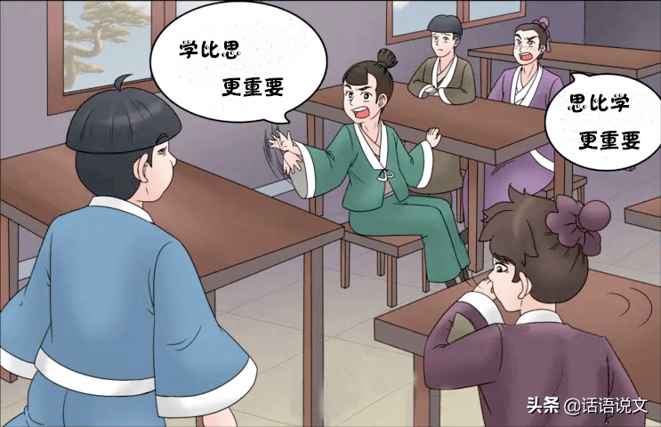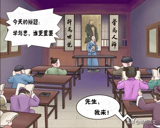 “我方认为思考更重要,孔圣人说‘吾日三省吾身’,就是强调要思考。只学习,不思考,与动物有什么区别呢?”我方辩友说。