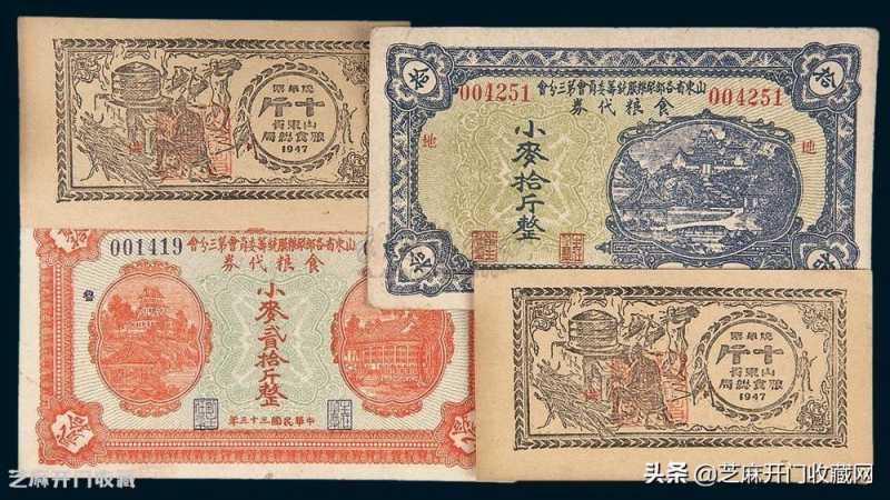3:民国三十五年(1946年)山东省粮食总局麦粮票,估价:RMB 1,500 ,成交价:RMB1,725