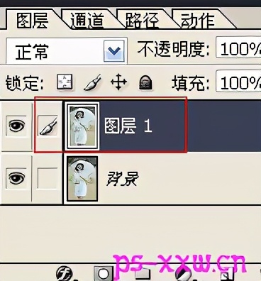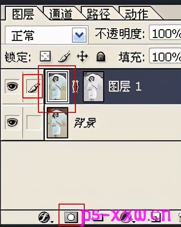 四、回到图层面板,然后为图层1添加矢量蒙版,再用鼠标选中图片上面,而不要使用默认的选中蒙版。