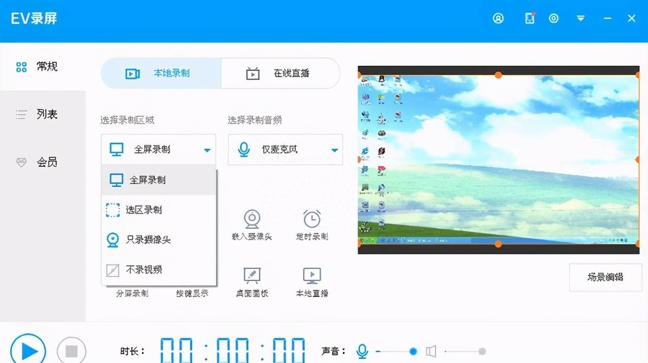 安装完成后打开软件主界面,点击”常规“选项可以看到”本地录制“和”在线直播“两个选项,如果大家只是录制短视频,直接点击”本地录制“就可以了。
