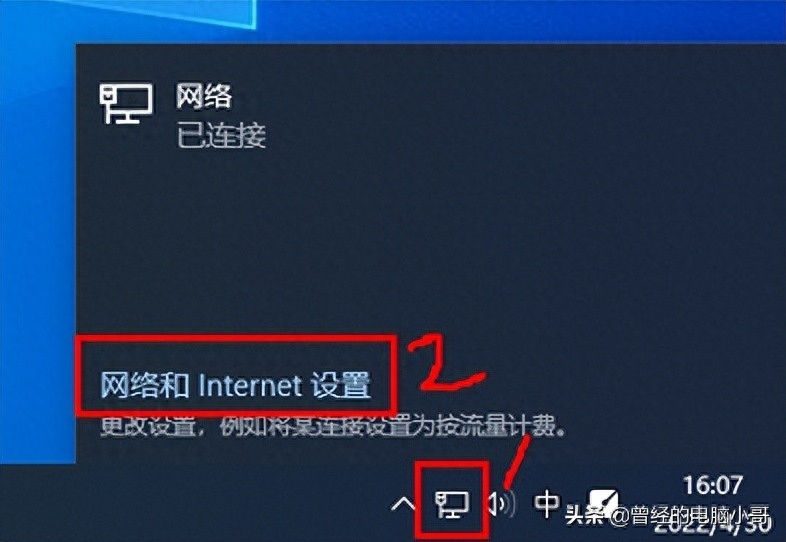 在小电脑图标上点鼠标左键→点上边的网络和internet设置→以太网→更改适配器设置→以太网→右键鼠标点属性→
