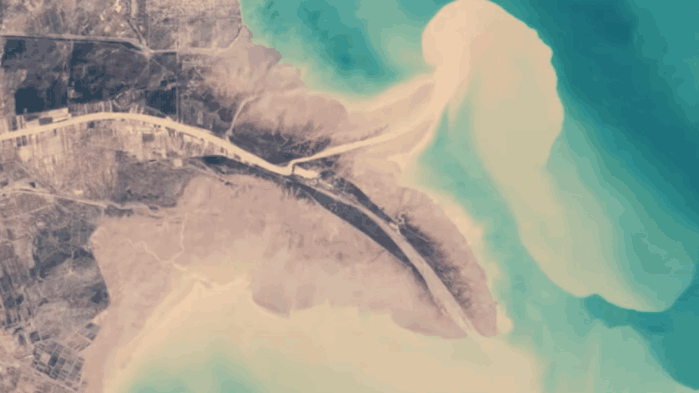黄河的入海口位于山东省东营市垦利县,地处渤海和莱州湾交汇处,从高空俯瞰黄河和渤海的交汇处,能够看到黄与蓝两种颜色形成的鲜明对比,就这样年复一年淤泥不断向大海推进,有人断言百年之后黄河很有可能将渤海填平创造另一片土地。