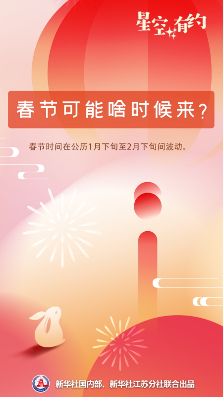 “如果上一个农历年没有闰月,则春节就会比上年提前约11天。如果上一个农历年有闰月,春节就会推迟大约19天。”王科超说,春节的时间会在公历1月下旬至2月下旬之间波动。比如,