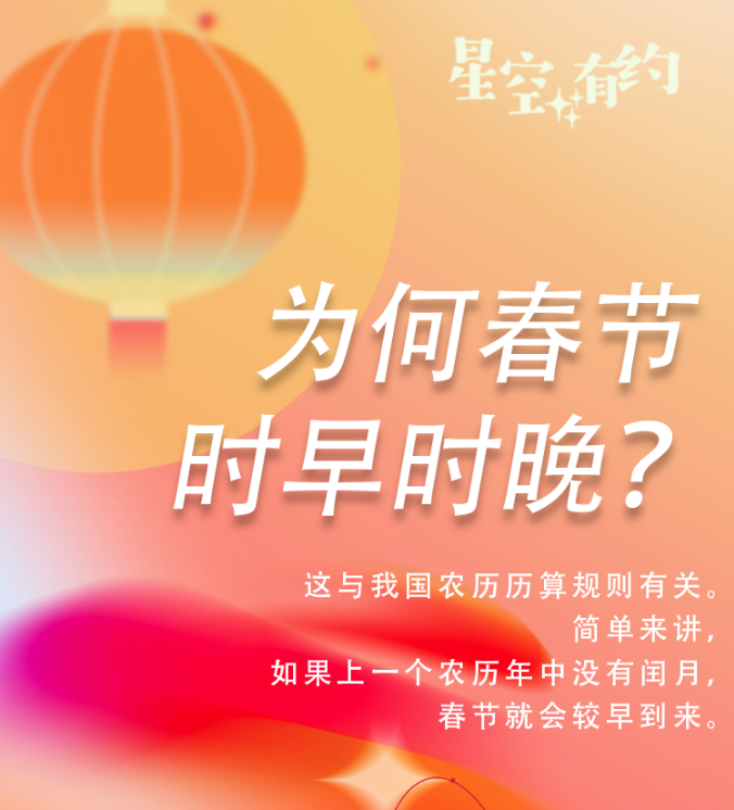 细心的公众可能发现,相比前两年,今年春节来得较早。为什么春节日期时早时晚?天文科普专家介绍,