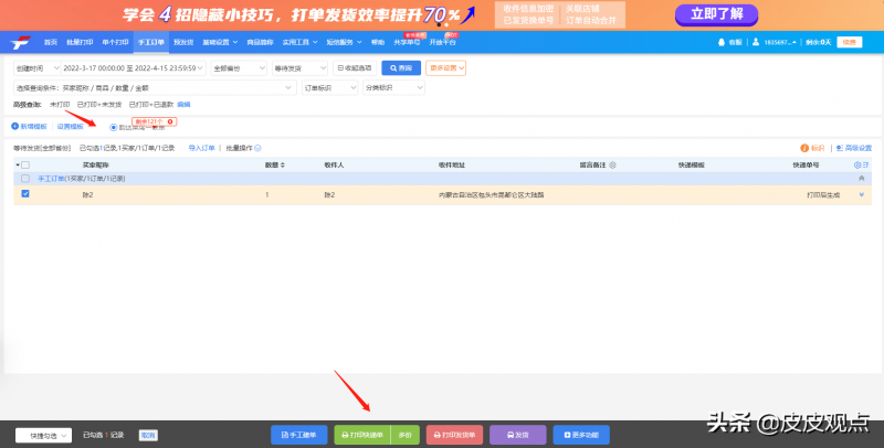 点击保存,勾选模板与订单,点击打印快递单按钮