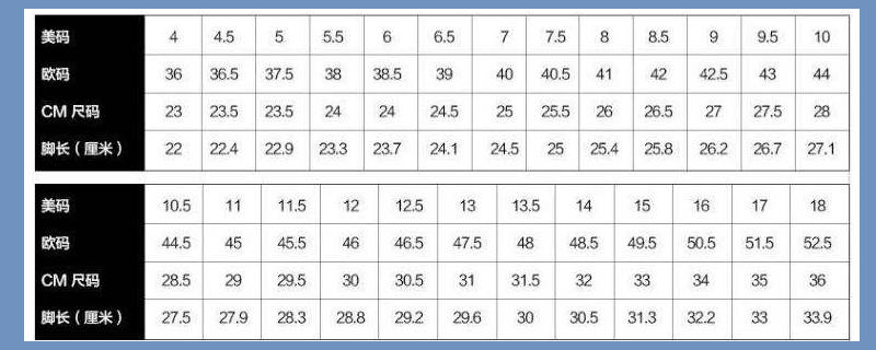 乔丹鞋鞋码大小 nike乔丹鞋尺码对照表