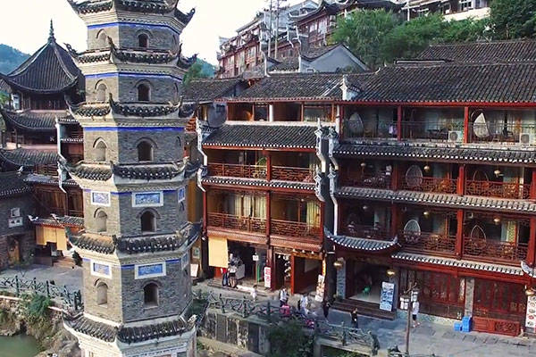 凤凰古城位于湘西土家族苗族自治州凤凰县,是国家历史文化名城,其风景将自然和人文有机的融合在一起,被誉为“湘西明珠”,被新西兰作家路易艾黎称为中国最美丽的小城之一,其主要景点有沙湾的吊脚楼、沈从文故居、杨家祠堂等。