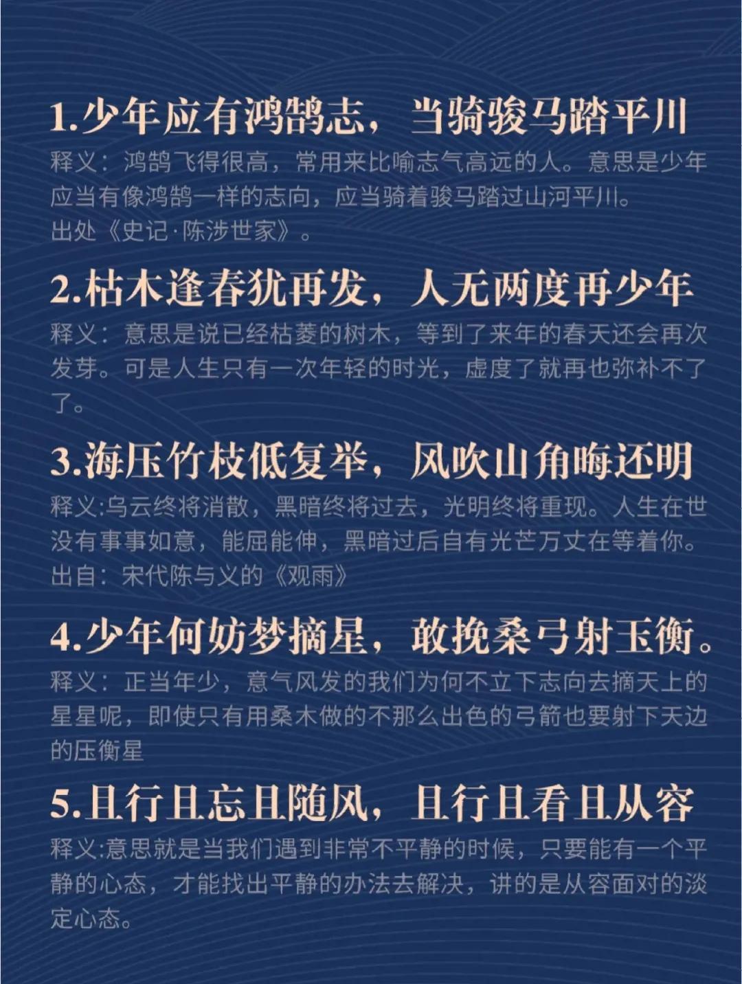 1.少年应有鸿鹄志,当骑骏马踏平川