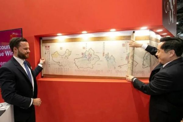 UCW向上中国葡萄酒展团邀请与会嘉宾,以中国青绿山水长卷的形式,将中国葡萄酒产区地图徐徐展开
