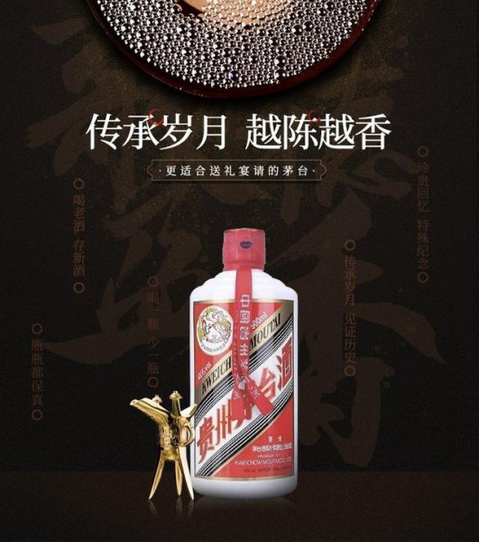 飞天茅台酒是中国大曲酱香型的鼻祖,历史悠久。产地内出土的文物中,有相当部分是商周时代的酒具,说明当时已经有酒。距今两千多年前的汉武帝时期,茅台当地就能酿酒,史称枸酱酒。明末清初,以大曲参与糖化挨棕捉、发酵、蒸馏取酒的工艺日趋成熟。数百年来,飞天茅台酒酿造工艺在继承和发展中不断完善,至今仍完整延用