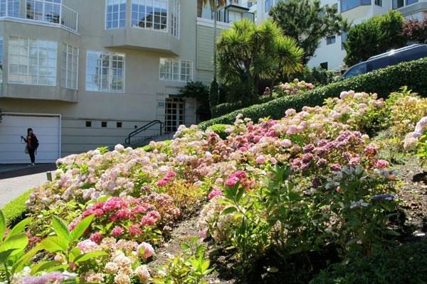 九曲花街的官方名称叫做伦巴底街,是世界上最为弯曲的街道,因其弯弯曲曲的8个转弯而得名。如果驾车通过,绝对是一项考验技术的挑战!如果不是老司机的可能会有点棘手,驾驶水平不好的朋友建议步行游览,整条路面完全由砖铺设而成,道路两旁种满了各色的鲜花植物,一年四季都可以看到不同的景色。从九曲花街的最高处向远处眺望,可以一览旧金山的风景,层层叠叠的房子被繁华花包围着。沿着九曲花街的弯曲度缓缓的行走下坡道时,车里面的人开着窗户,对着窗外的游客们尖叫,欢笑,有的人身子甚至探出了车窗做着奇怪的姿势来炫耀他们的开心、快乐~所以,到了旧金山之后,九曲花街绝对是一个必打卡的景点。