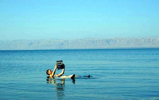 死海位于以色列,巴勒斯坦、约旦交界,是世界上最低的湖泊,湖面海拔-430米。湖最深处380.29米,最深处湖床海拔-800.112米。死海以其高含盐度的海水闻名世界。人们能很轻易的在死海里漂浮起来。这个内陆湖泊正在以创纪录的速度衰退,在2011年10月到2012年10月,死海睡眠下降了惊人的1.5米。最扩祸首是由以色列、约旦两国的钾肥公司过度取水,导致它可能会在不久以后萎缩成旱地。