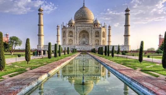 泰姬陵(TajMahal),是印度知名度最高的古迹之一,世界文化遗产,被评选为“世界新七大奇迹”。泰姬陵全称为“泰姬·玛哈拉”,是一座白色大理石建成的巨大陵墓清真寺,是莫卧儿皇帝沙贾汗为纪念他心爱的妃子于1631年至1653年在阿格拉而建的。这是一座全部用白色大理石建成的宫殿式陵园,是一件集伊斯兰和印度建筑艺术于一体的古代经典作品,泰戈尔曾赞美道:泰姬陵是“时间面颊上的一滴泪”。目前泰姬陵正遭受到的环境威胁主要来自附近Yamada河的污染。污染物排放和酸雨等都在侵蚀着泰姬陵的结构。河流水位下降也导致建筑出现了裂缝,泰姬陵的木质基础也受到腐蚀。