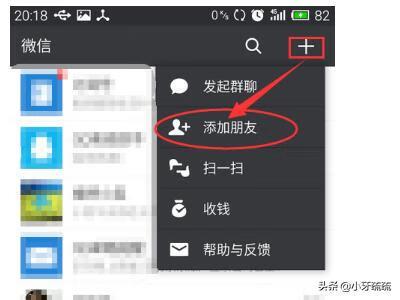 2.打开后,我们进入的为微信主页,我们要点击右上角的“+”号,在弹出的页面中我们选择“添加朋友”。