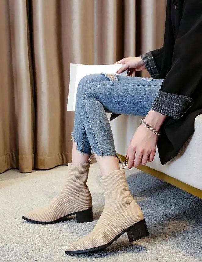 说起针织材质,大家应该都会想起去年大火的袜靴,除了鞋面是皮革制成的,靴筒部分就是采用的针织面料。