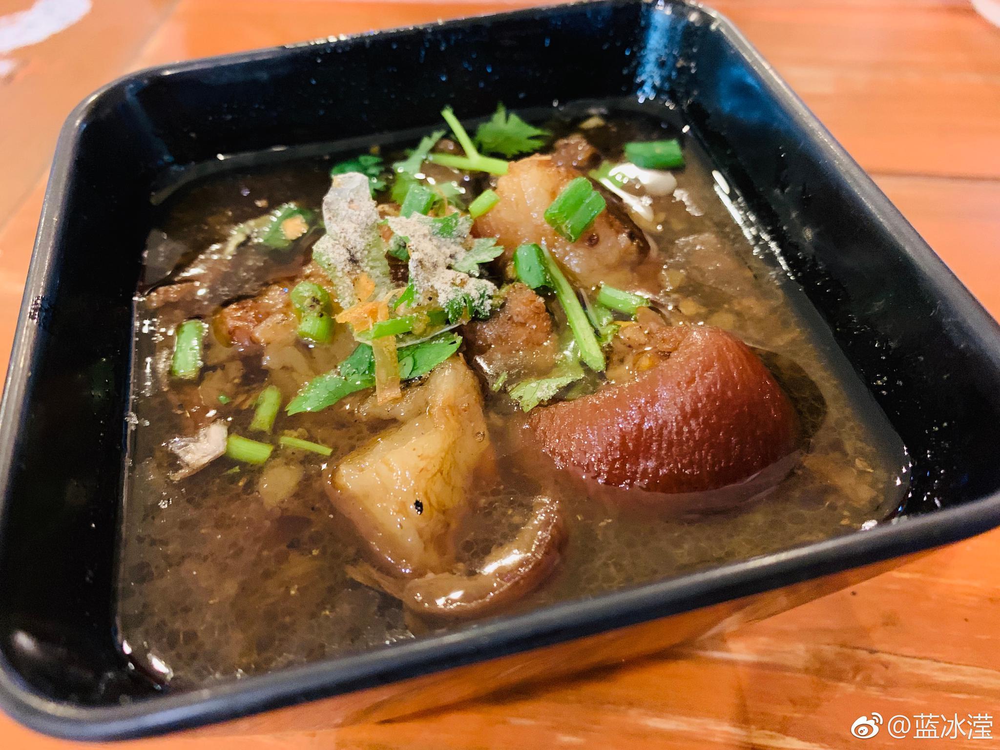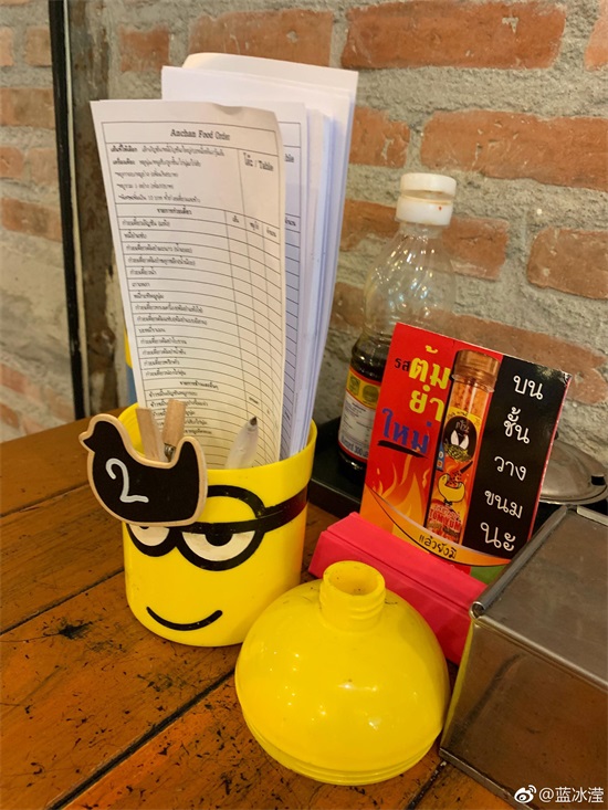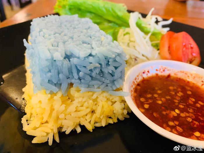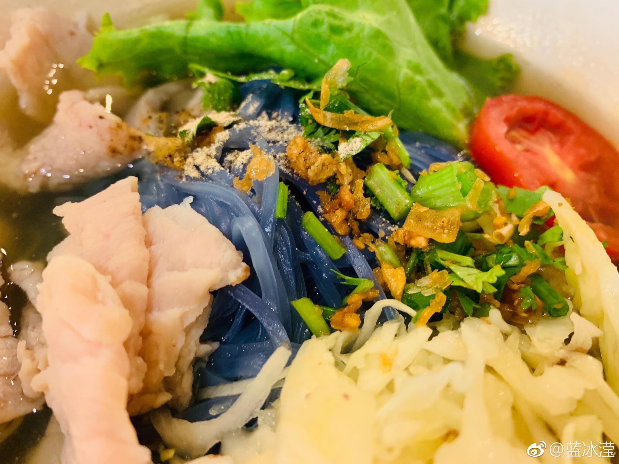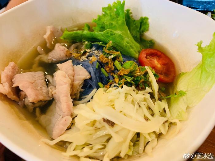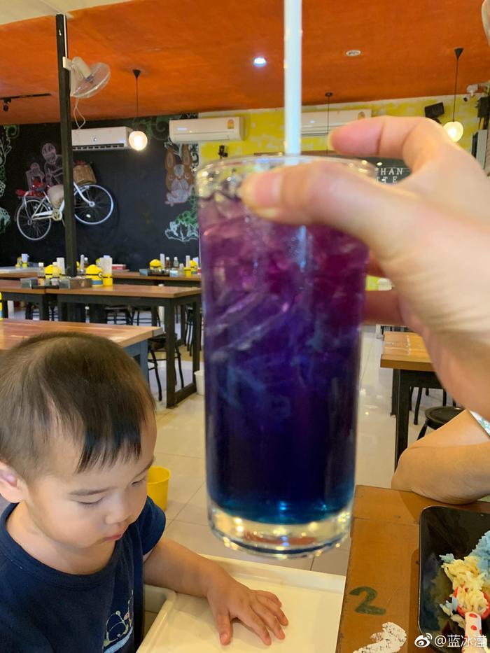 打卡网红蝶豆花面~蓝面条是用蝶豆花汁和面做成的。蝶豆花饮料也是蝶豆花+纯净水熬煮的,上面一块柠檬,酸性的柠檬汁加进去,就由蓝变红了。这是利用花青素遇酸变红,遇碱变蓝的特性哦~我看到好多人好奇这变化,其实很简单,紫薯也一样可以这样玩儿~蝶豆花面都有点甜,喜欢椰汁的猪肉面,甜甜的椰汁配上辣酱水,味道还是很特别的 整体味道很泰国 价格不贵,面、饭基本50?一份,蝶豆花饮料20?,好吃谈不上,但是绝对不贵。我们早晨7:30到的,虽然没营业,但是老板也热情的招呼我们进去吃饭了 看到带着孩子还问空调冷不冷~ 满桌小黄人,还有买玩具的货架,小弟弟很喜欢@鲜城