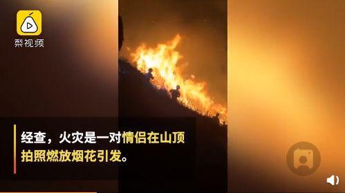 事后调查才发现,起火的原因竟然是一对情侣在山顶上为了拍照好看放烟花。