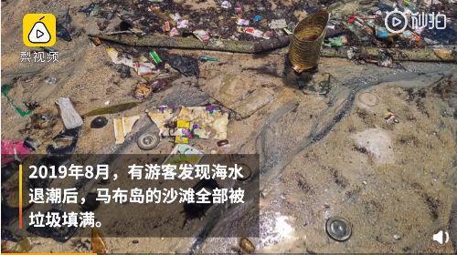 去年8月,海水退潮后,有游客发现马布岛的沙滩全被垃圾填满了,海滩上一片狼藉触目惊心。