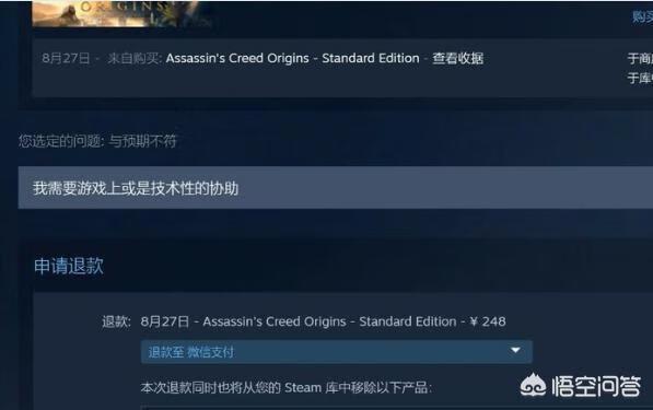 四、点击退款之后,选择金额放回的账户,可以是steam账户,也可以是你之前支付的账户;