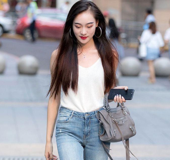 瑰姿艳逸的小姐姐,一件V领背心配牛仔裤,大秀曼妙的好身材