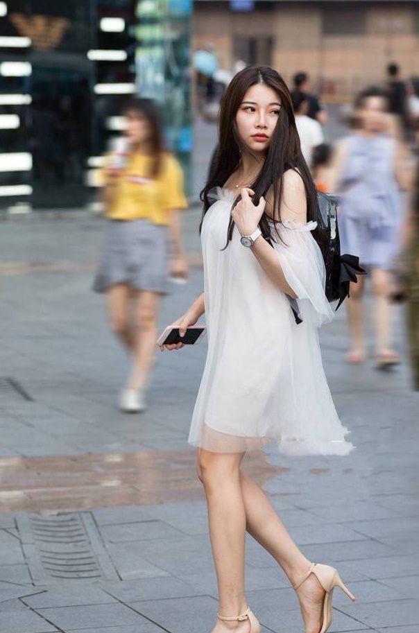 街拍:身姿卓越的小姐姐,搭配低胸T恤,身材高挑,展现女神气质