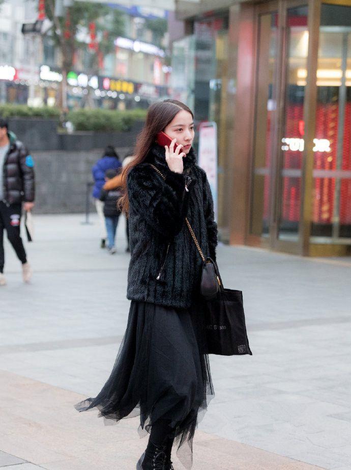 一袭黑色时髦美女穿着精致,展现女人魅力气场!
