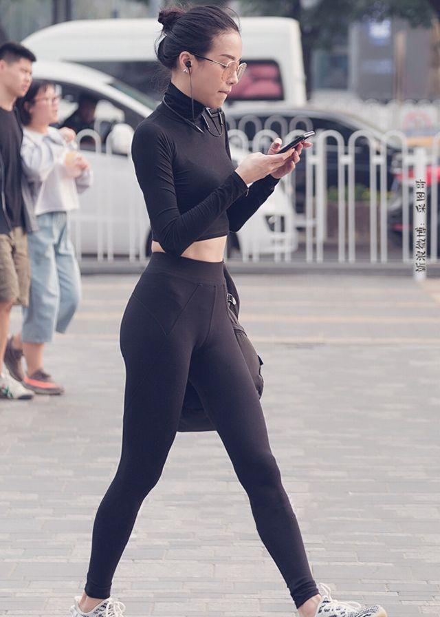 街拍:一身黑色紧身衣的个性妹子,好身材展现无遗