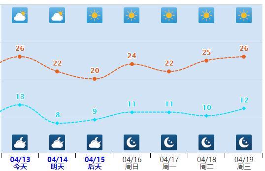 以廊坊为例,今天最高气温能达26℃,到了15日就降至20℃,16日再次升至24℃,随后又回落……