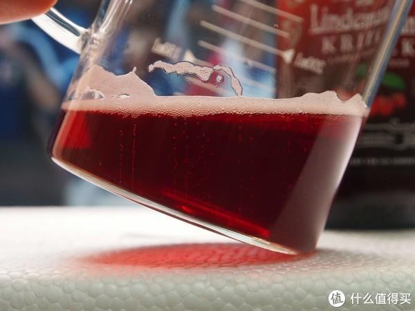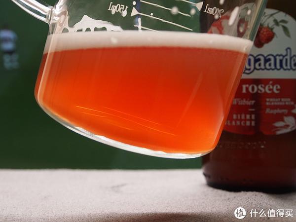 开瓶后的啤酒香味非常浓郁,酒体是今天五款中颜色最深的,呈暗玫瑰红色,气泡厚实。