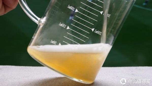开瓶后白啤的风味还是很明显的,酒体呈金黄色,泡沫绵密。