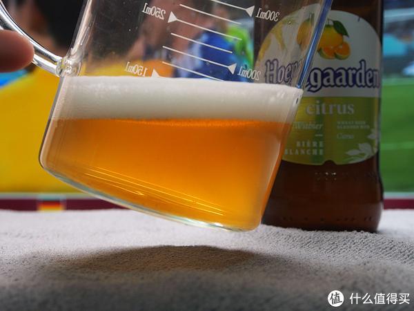 开盘后白啤的风味占据了主导,酒体呈淡黄色,泡沫绵密。