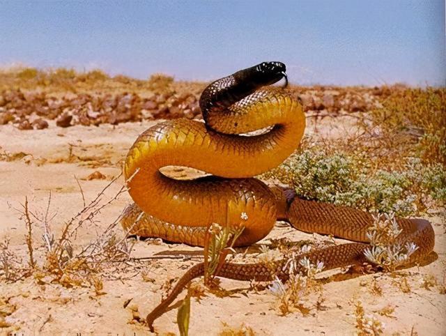 按道理来说,作为地方霸主,应该有令所有毒蛇都闻风丧胆,不过内陆太攀蛇却成为被欺负的对象。在澳洲有一种体型很大的毒蛇:棕伊澳蛇,堪称“中国版眼镜王蛇”,极其喜欢吃毒蛇,若是一顿没有肉食,就会极其暴躁,有很强的食蛇性,还对毒蛇有一定的免疫力。