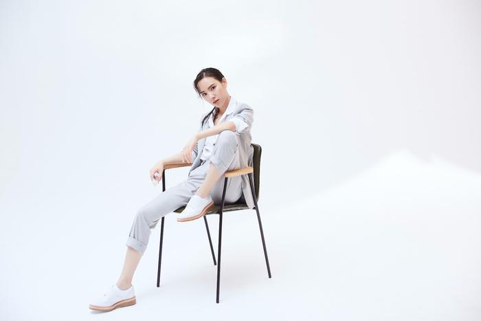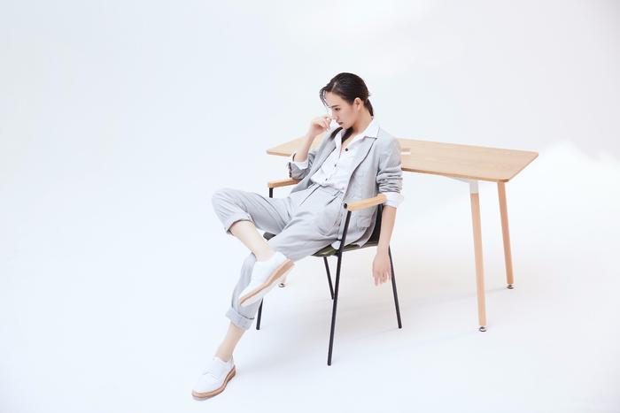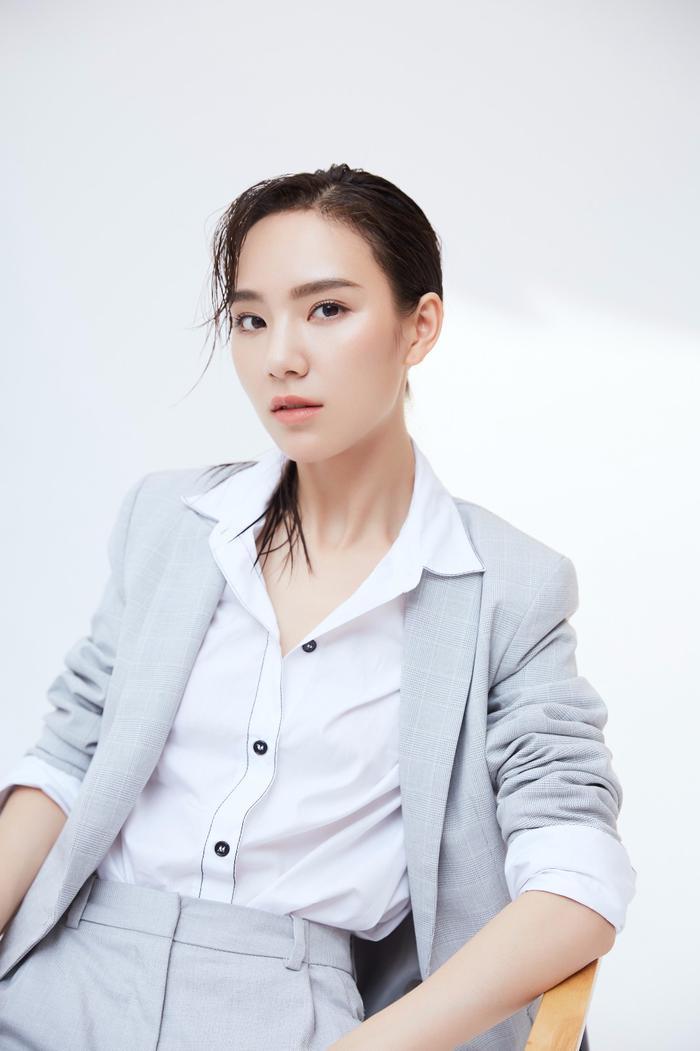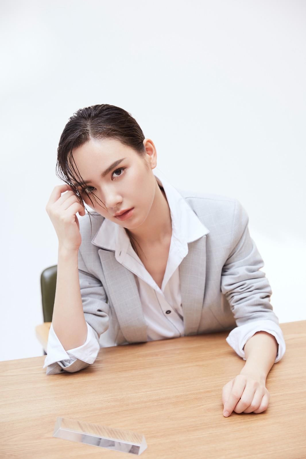 唐莉佳一身灰色西装,洁净干练,意气风发。