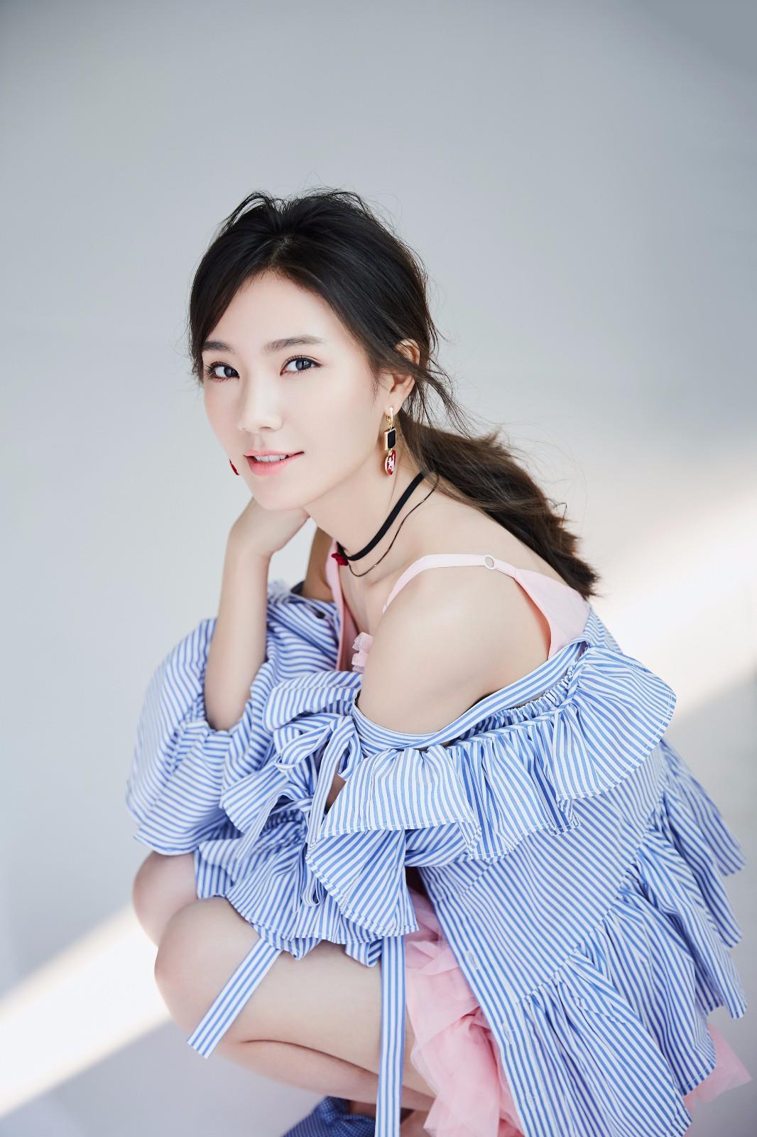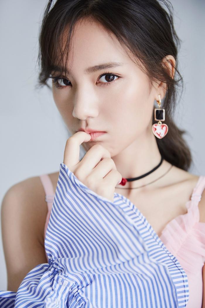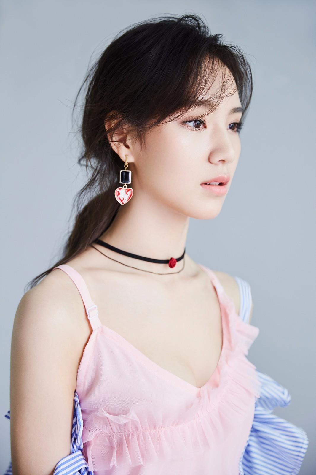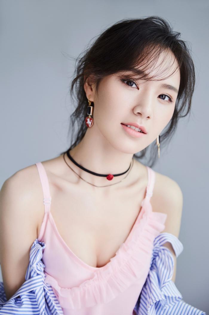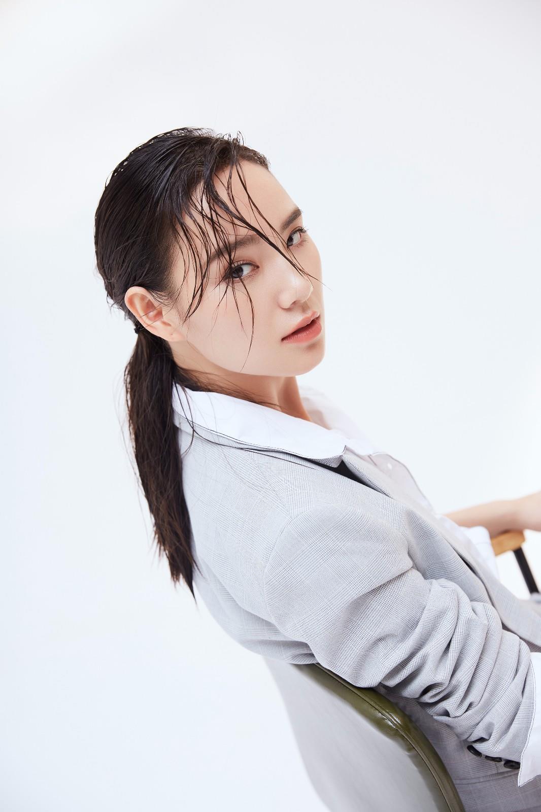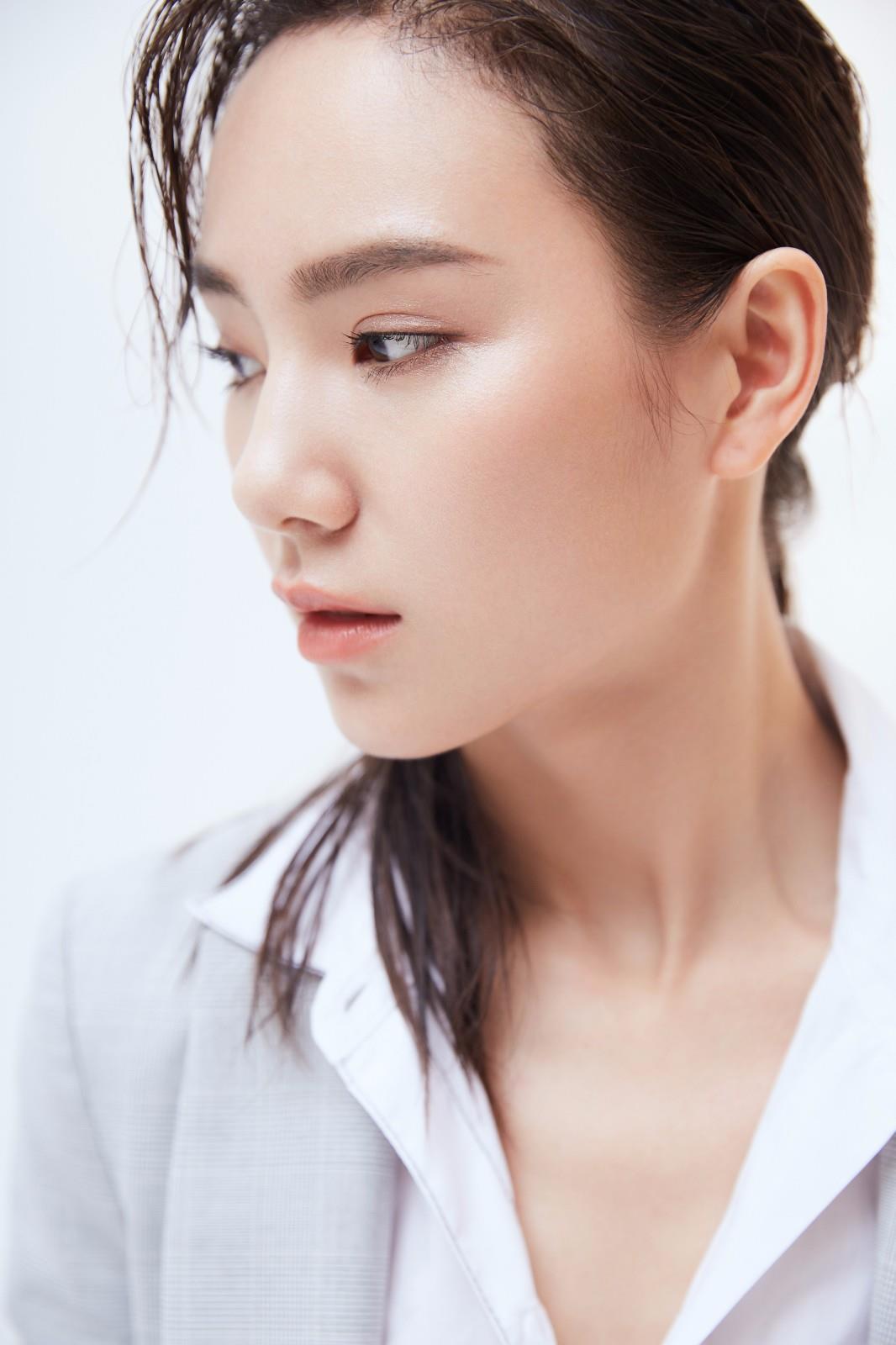 发丝随意的落在唐莉佳俊秀的脸庞上,透露出一丝性感的意味。