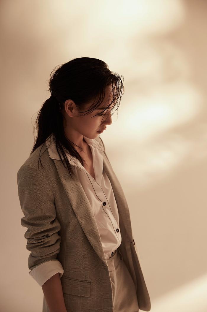 望向镜头的唐莉佳眼神深邃如潭,英姿飒爽。
