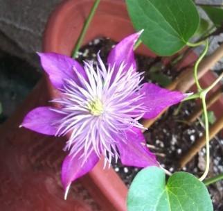 而且水晶喷泉的株型不高,一般也就1.5米左右,在铁线莲里属二低矮的那一类,可以养在庭院里,也可以养在花盆里,放在阳台上,很漂亮,并且钱线莲的枝条非常柔软,打个花架子,可以随意造型。